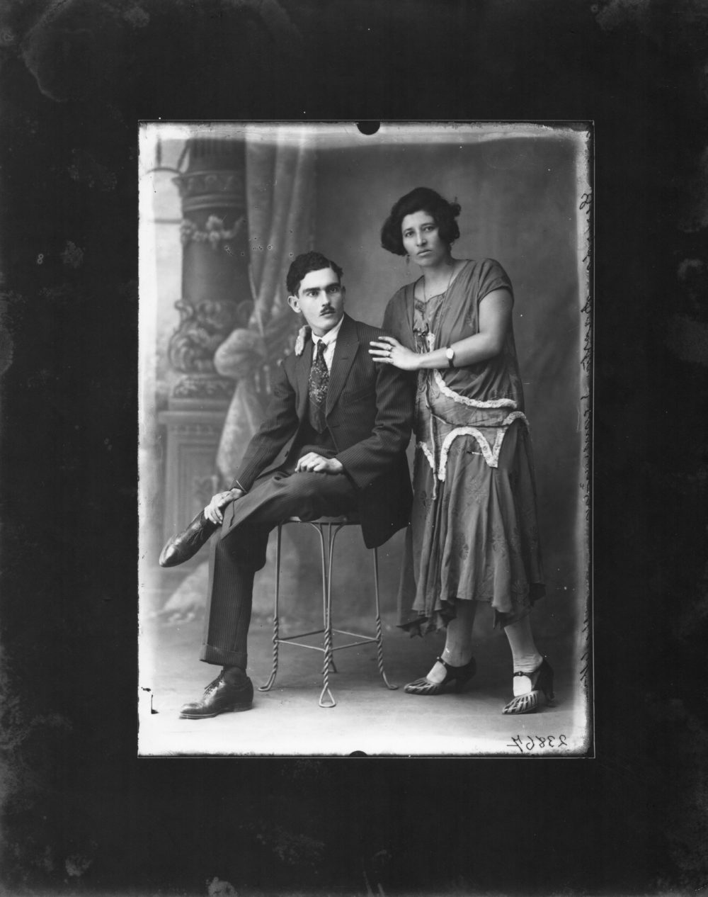 A lo largo de sus casi cuatro décadas de trayectoria, Benjamín de la Calle retrató un gran número de familias, convirtiéndolas en uno de los temas recurrentes de su vasta producción. En la mayoría de estas fotografías, predomina la presencia del padre e incluso la rotulación del archivo se hacía a su nombre, lo que da cuenta de la manera en la que se ha estructurado la sociedad antioqueña, donde la cima de la jerarquía familiar es ocupada por el varón. Sin embargo, hay en el archivo de De la Calle, como en la vida, algunos casos que rompen dicha generalidad. Aunque mayormente tradicionales, De la Calle va a retratar familias compuestas por madres o padres viudos o separados y sus hijos, abuelo y nietos, tías y sobrinos, parejas sin hijos, etc. En estas imágenes resalta una intención compositiva, en la que la indumentaria y la ornamentación dejan entrever la condición social de la familia. Tal es el caso de Leocadio Upegui y Familia (1914) o Mariano Hernández y señora (1916), en donde se observan arreglos florales a los pies de los retratados, ante la ausencia de calzado a la altura de la ocasión. En otros casos, el guiño simbólico está dado por la composición y la vestimenta, como en el caso de Gabriel Tamayo R. y Familia (1919), en la que un triángulo descendente conformado por los trajes blancos de los tres hijos, se aúnan a la posición simétrica de padre y madre, configurando así una especie de corazón.