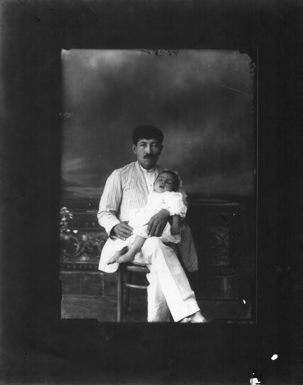 A lo largo de sus casi cuatro décadas de trayectoria, Benjamín de la Calle retrató un gran número de familias, convirtiéndolas en uno de los temas recurrentes de su vasta producción. En la mayoría de estas fotografías, predomina la presencia del padre e incluso la rotulación del archivo se hacía a su nombre, lo que da cuenta de la manera en la que se ha estructurado la sociedad antioqueña, donde la cima de la jerarquía familiar es ocupada por el varón. Sin embargo, hay en el archivo de De la Calle, como en la vida, algunos casos que rompen dicha generalidad. Aunque mayormente tradicionales, De la Calle va a retratar familias compuestas por madres o padres viudos o separados y sus hijos, abuelo y nietos, tías y sobrinos, parejas sin hijos, etc. En estas imágenes resalta una intención compositiva, en la que la indumentaria y la ornamentación dejan entrever la condición social de la familia. Tal es el caso de Leocadio Upegui y Familia (1914) o Mariano Hernández y señora (1916), en donde se observan arreglos florales a los pies de los retratados, ante la ausencia de calzado a la altura de la ocasión. En otros casos, el guiño simbólico está dado por la composición y la vestimenta, como en el caso de Gabriel Tamayo R. y Familia (1919), en la que un triángulo descendente conformado por los trajes blancos de los tres hijos, se aúnan a la posición simétrica de padre y madre, configurando así una especie de corazón.