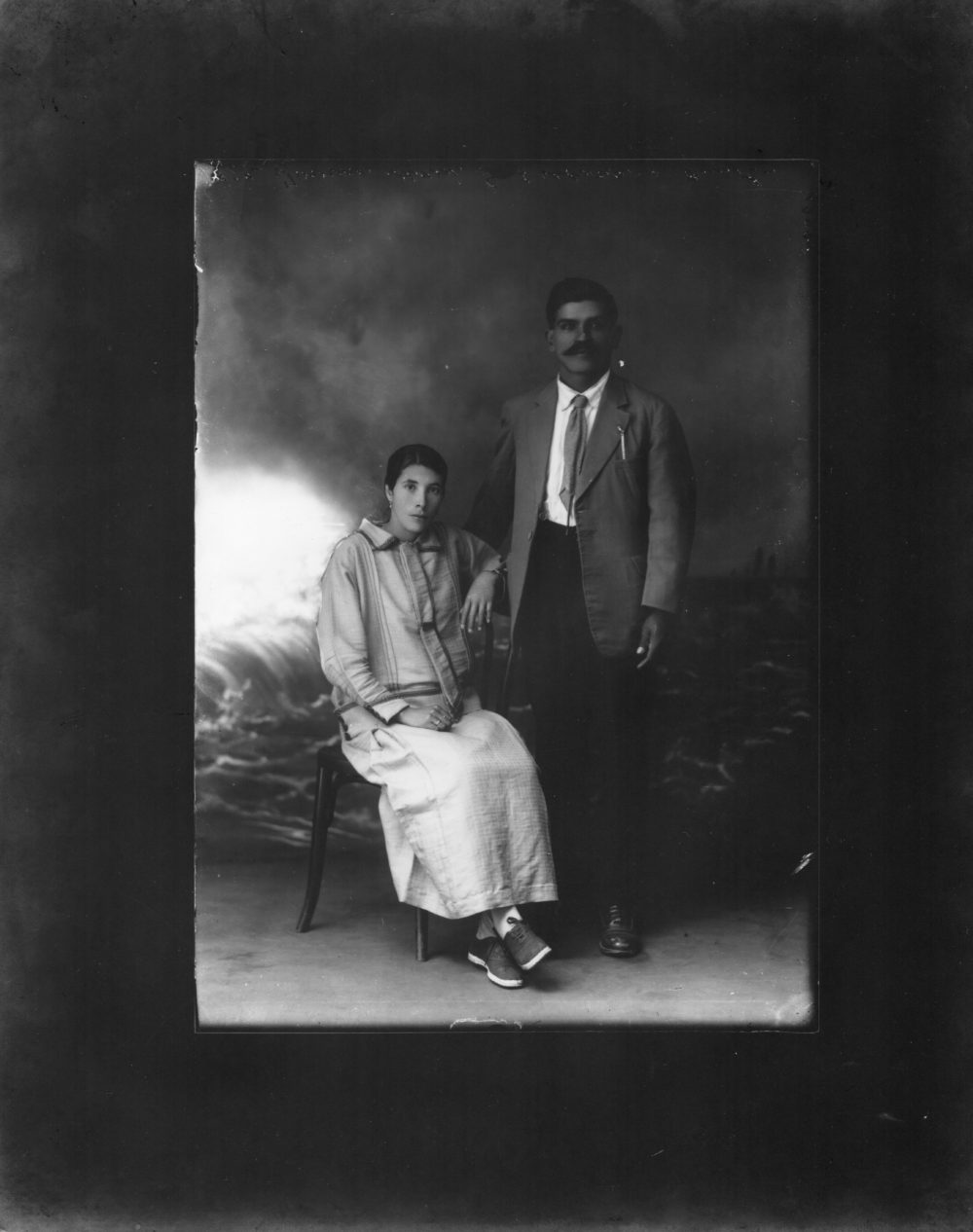 A lo largo de sus casi cuatro décadas de trayectoria, Benjamín de la Calle retrató un gran número de familias, convirtiéndolas en uno de los temas recurrentes de su vasta producción. En la mayoría de estas fotografías, predomina la presencia del padre e incluso la rotulación del archivo se hacía a su nombre, lo que da cuenta de la manera en la que se ha estructurado la sociedad antioqueña, donde la cima de la jerarquía familiar es ocupada por el varón. Sin embargo, hay en el archivo de De la Calle, como en la vida, algunos casos que rompen dicha generalidad. Aunque mayormente tradicionales, De la Calle va a retratar familias compuestas por madres o padres viudos o separados y sus hijos, abuelo y nietos, tías y sobrinos, parejas sin hijos, etc. En estas imágenes resalta una intención compositiva, en la que la indumentaria y la ornamentación dejan entrever la condición social de la familia. Tal es el caso de Leocadio Upegui y Familia (1914) o Mariano Hernández y señora (1916), en donde se observan arreglos florales a los pies de los retratados, ante la ausencia de calzado a la altura de la ocasión. En otros casos, el guiño simbólico está dado por la composición y la vestimenta, como en el caso de Gabriel Tamayo R. y Familia (1919), en la que un triángulo descendente conformado por los trajes blancos de los tres hijos, se aúnan a la posición simétrica de padre y madre, configurando así una especie de corazón.