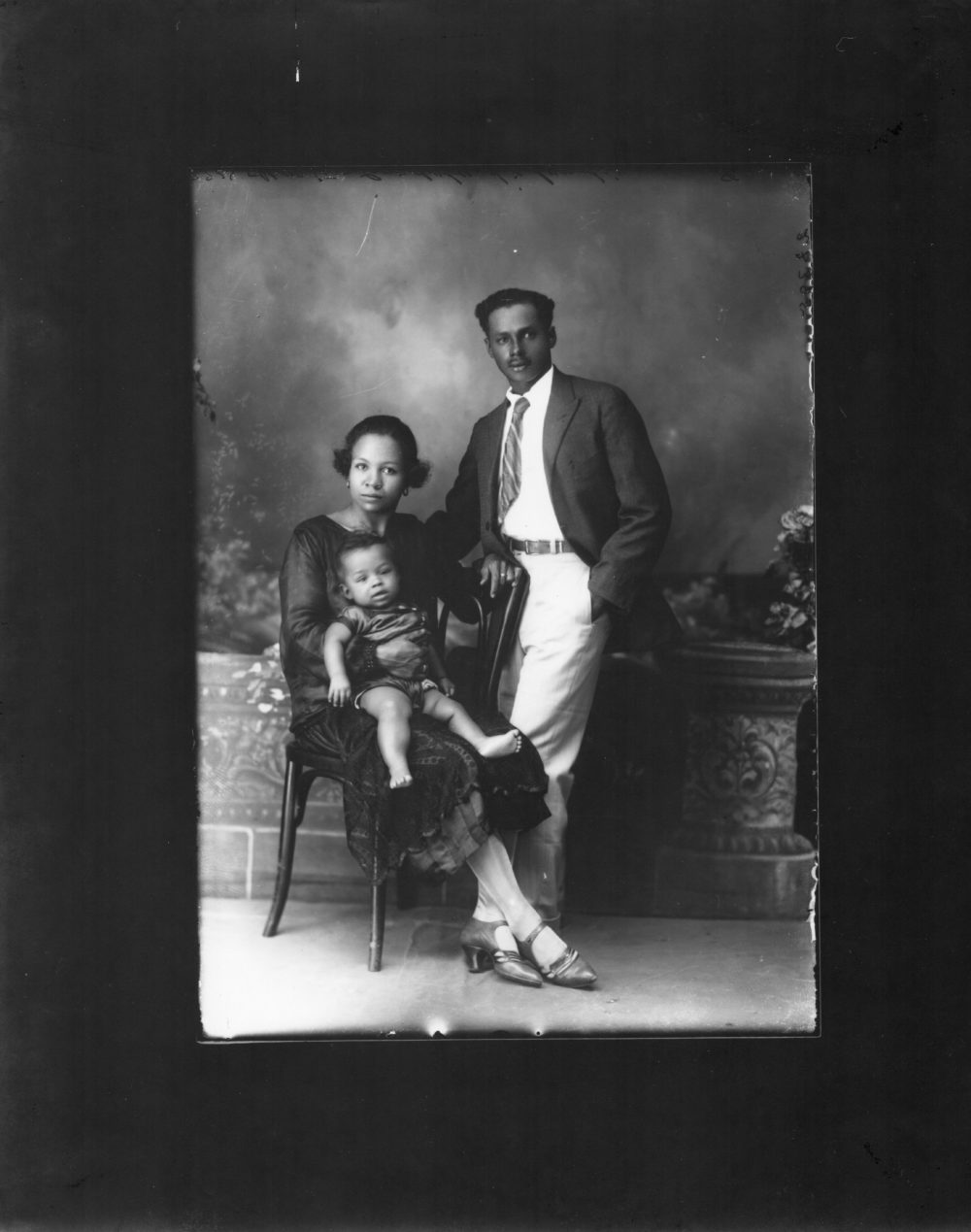 A lo largo de sus casi cuatro décadas de trayectoria, Benjamín de la Calle retrató un gran número de familias, convirtiéndolas en uno de los temas recurrentes de su vasta producción. En la mayoría de estas fotografías, predomina la presencia del padre e incluso la rotulación del archivo se hacía a su nombre, lo que da cuenta de la manera en la que se ha estructurado la sociedad antioqueña, donde la cima de la jerarquía familiar es ocupada por el varón. Sin embargo, hay en el archivo de De la Calle, como en la vida, algunos casos que rompen dicha generalidad. Aunque mayormente tradicionales, De la Calle va a retratar familias compuestas por madres o padres viudos o separados y sus hijos, abuelo y nietos, tías y sobrinos, parejas sin hijos, etc. En estas imágenes resalta una intención compositiva, en la que la indumentaria y la ornamentación dejan entrever la condición social de la familia. Tal es el caso de Leocadio Upegui y Familia (1914) o Mariano Hernández y señora (1916), en donde se observan arreglos florales a los pies de los retratados, ante la ausencia de calzado a la altura de la ocasión. En otros casos, el guiño simbólico está dado por la composición y la vestimenta, como en el caso de Gabriel Tamayo R. y Familia (1919), en la que un triángulo descendente conformado por los trajes blancos de los tres hijos, se aúnan a la posición simétrica de padre y madre, configurando así una especie de corazón.
