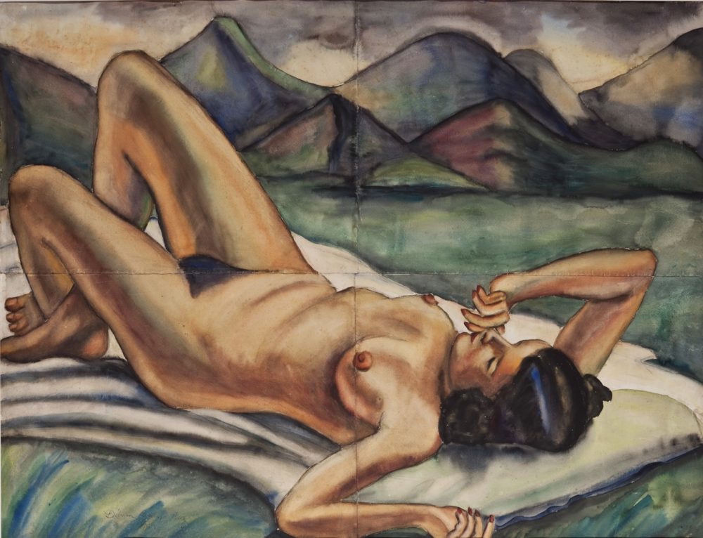 Débora Arango comenzó sus estudios con el artista Moderno Pedro Nel Gómez en 1936. A pesar de que Nel Gómez pintó desnudos también, él nunca apoyó el deseo de Arango de trabajar con modelos desnudas y explorar el desnudo femenino. Arango fue excluida del círculo de Nel Gómez en 1938, sin embargo, exploró el cuerpo femenino de modelos vivas ya que amigas y conocidas posaron para ella durante toda su vida. Desnudos de Arango tales como Montañas, 1940, representan el cuerpo femenino como una entidad moderna no idealizada, fuera de los prejuicios morales y sociales de su tiempo, destapando el cuerpo femenino con toda su sensualidad natural, libre de represión y en contra de las normas académicas de representación del cuerpo femenino de la época.