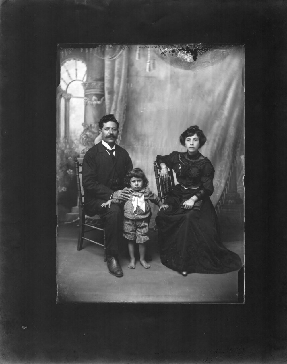 A lo largo de sus casi cuatro décadas de trayectoria, Benjamín de la Calle retrató un gran número de familias, convirtiéndolas en uno de los temas recurrentes de su vasta producción. En la mayoría de estas fotografías, predomina la presencia del padre e incluso la rotulación del archivo se hacía a su nombre, lo que da cuenta de la manera en la que se ha estructurado la sociedad antioqueña, donde la cima de la jerarquía familiar es ocupada por el varón. Sin embargo, hay en el archivo de De la Calle, como en la vida, algunos casos que rompen dicha generalidad. Aunque mayormente tradicionales, De la Calle va a retratar familias compuestas por madres o padres viudos o separados y sus hijos, abuelo y nietos, tías y sobrinos, parejas sin hijos, etc. En estas imágenes resalta una intención compositiva, en la que la indumentaria y la ornamentación dejan entrever la condición social de la familia. Tal es el caso de Leocadio Upegui y Familia (1914) o Mariano Hernández y señora (1916), en donde se observan arreglos florales a los pies de los retratados, ante la ausencia de calzado a la altura de la ocasión. En otros casos, el guiño simbólico está dado por la composición y la vestimenta, como en el caso de Gabriel Tamayo R. y Familia (1919), en la que un triángulo descendente conformado por los trajes blancos de los tres hijos, se aúnan a la posición simétrica de padre y madre, configurando así una especie de corazón.
