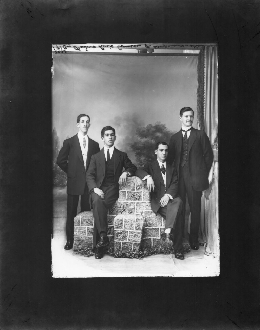 La llamada “edad de oro” de la fotografía antioqueña (1880-1920) se dio en primera instancia gracias a la férrea vocación de pioneros como Fermín Isaza, Rafael Sanín, Vicente y Pastor Restrepo, Ricardo Wills y Miguel Gutiérrez, pero también como consecuencia de la modernización económica de la región. Este fenómeno contribuyó enormemente a la difusión de las técnicas propias del oficio, pero sobre todo, a que los costos asociados a la producción se redujeran considerablemente. Ello desplegó lo que podríamos definir como una suerte de democratización del acceso a la fotografía, y uno de los personajes que sería fiel prueba de ello es Benjamín de la Calle (1869-1934). Este fotógrafo oriundo de Yarumal logró aportar a la ampliación del repertorio visual antioqueño, debido, entre otras cosas, a la localización central de su taller fotográfico, entre mercado y estación de tren, y a los precios módicos que ofrecía en el voz a voz y en el primer Directorio General de Medellín (1906). Su competitividad en la relación calidad-precio se presentaba seductora para aquellos colectivos de músicos, estudiantes, obreros sindicales, profesores, militares, etc., que requerían dejar registro mayormente conmemorativo de su actividad o conformación. Estas fotografías de grupo no solo dan cuenta de la sociedad e influencias en la que se enmarcan, sino que dejan ver ciertos rasgos de libertad compositiva que dotan de dinamismo a las imágenes, dejando evidencia no solo de aquella colectividad institucional o promocional elaborada para el lente, sino de aquella vida social más espontánea y cotidiana.