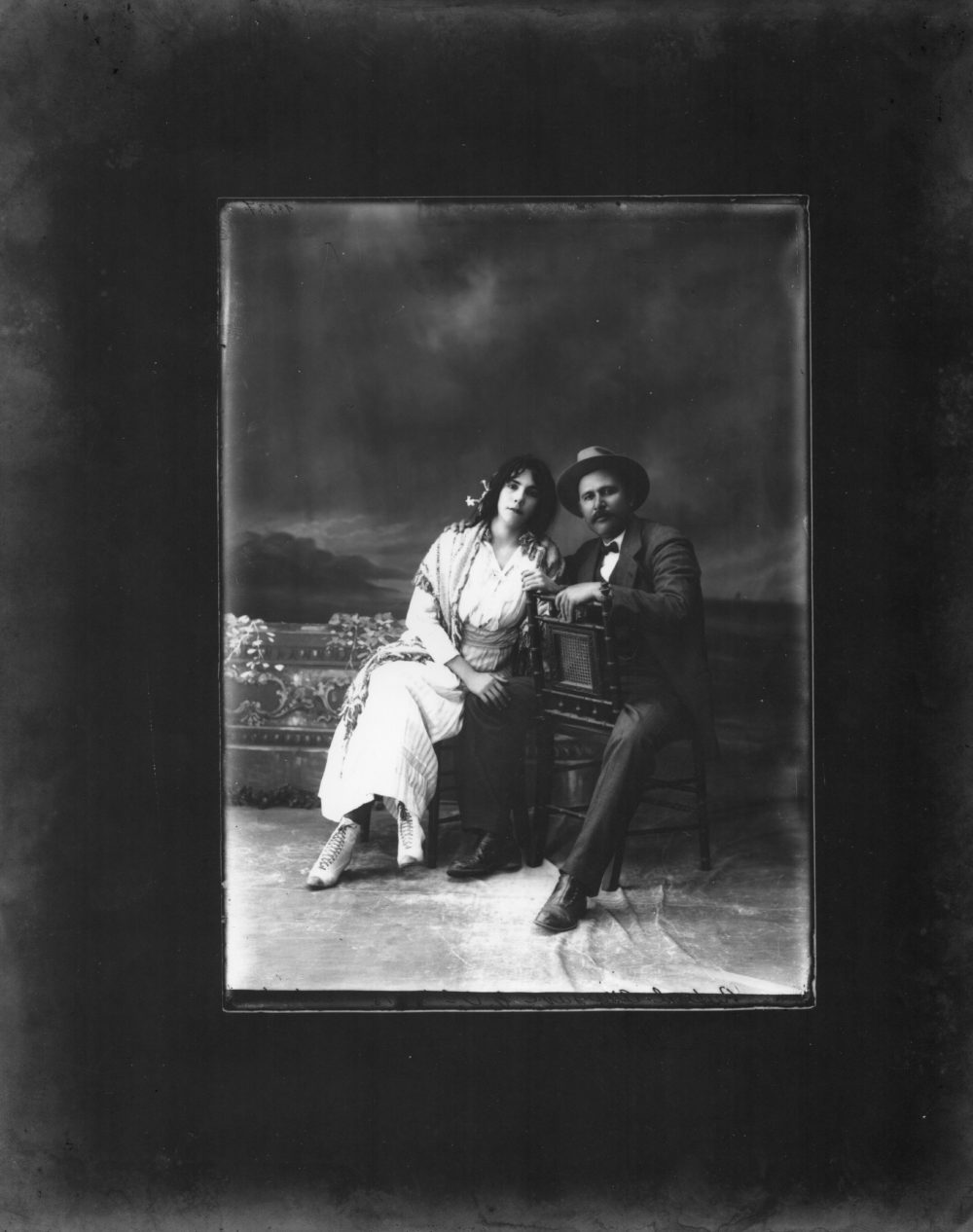 A lo largo de sus casi cuatro décadas de trayectoria, Benjamín de la Calle retrató un gran número de familias, convirtiéndolas en uno de los temas recurrentes de su vasta producción. En la mayoría de estas fotografías, predomina la presencia del padre e incluso la rotulación del archivo se hacía a su nombre, lo que da cuenta de la manera en la que se ha estructurado la sociedad antioqueña, donde la cima de la jerarquía familiar es ocupada por el varón. Sin embargo, hay en el archivo de De la Calle, como en la vida, algunos casos que rompen dicha generalidad. Aunque mayormente tradicionales, De la Calle va a retratar familias compuestas por madres o padres viudos o separados y sus hijos, abuelo y nietos, tías y sobrinos, parejas sin hijos, etc. En estas imágenes resalta una intención compositiva, en la que la indumentaria y la ornamentación dejan entrever la condición social de la familia. Tal es el caso de Leocadio Upegui y Familia (1914) o Mariano Hernández y señora (1916), en donde se observan arreglos florales a los pies de los retratados, ante la ausencia de calzado a la altura de la ocasión. En otros casos, el guiño simbólico está dado por la composición y la vestimenta, como en el caso de Gabriel Tamayo R. y Familia (1919), en la que un triángulo descendente conformado por los trajes blancos de los tres hijos, se aúnan a la posición simétrica de padre y madre, configurando así una especie de corazón.