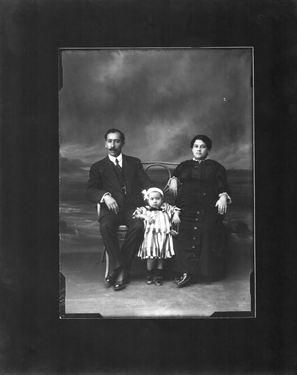 A lo largo de sus casi cuatro décadas de trayectoria, Benjamín de la Calle retrató un gran número de familias, convirtiéndolas en uno de los temas recurrentes de su vasta producción. En la mayoría de estas fotografías, predomina la presencia del padre e incluso la rotulación del archivo se hacía a su nombre, lo que da cuenta de la manera en la que se ha estructurado la sociedad antioqueña, donde la cima de la jerarquía familiar es ocupada por el varón. Sin embargo, hay en el archivo de De la Calle, como en la vida, algunos casos que rompen dicha generalidad. Aunque mayormente tradicionales, De la Calle va a retratar familias compuestas por madres o padres viudos o separados y sus hijos, abuelo y nietos, tías y sobrinos, parejas sin hijos, etc. En estas imágenes resalta una intención compositiva, en la que la indumentaria y la ornamentación dejan entrever la condición social de la familia. Tal es el caso de Leocadio Upegui y Familia (1914) o Mariano Hernández y señora (1916), en donde se observan arreglos florales a los pies de los retratados, ante la ausencia de calzado a la altura de la ocasión. En otros casos, el guiño simbólico está dado por la composición y la vestimenta, como en el caso de Gabriel Tamayo R. y Familia (1919), en la que un triángulo descendente conformado por los trajes blancos de los tres hijos, se aúnan a la posición simétrica de padre y madre, configurando así una especie de corazón.