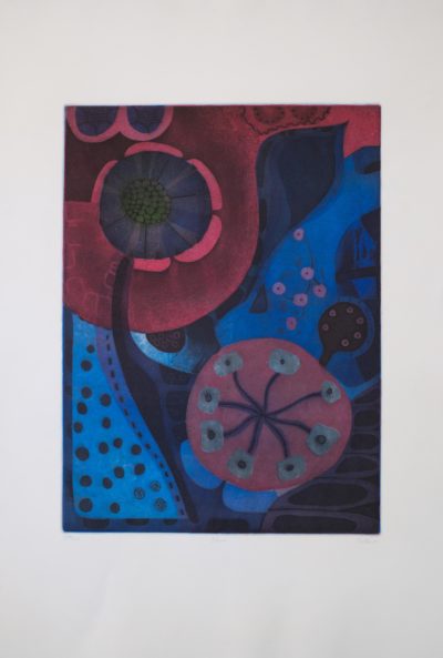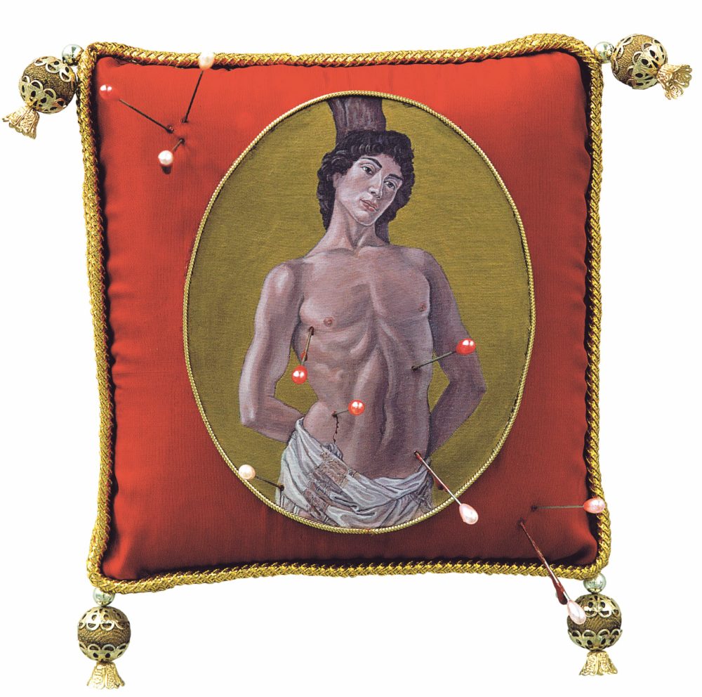 Técnica: Acrílico sobre seda, gro, alfileres y bisuteria