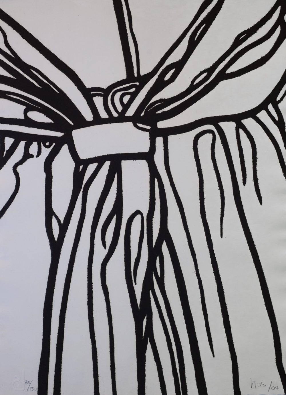 La vocación de Ana Mercedes Hoyos (1942 – 2014) se vio alimentada por su entorno familiar desde muy temprana edad. Su padre la alentó a tomar clases particulares de pintura con el prominente artista Luciano Jaramillo, quien continuó siendo su profesor cuando ingresó al programa de artes plásticas en la Universidad de los Andes; sin embargo, no llegaría a titularse ni allí ni en la Universidad Nacional. Ello no le impidió hacer una prolífica carrera que la llevó a participar en bienales internacionales y que le traería numerosos reconocimientos que la posicionaron como una figura relevante en la escena artística nacional del siglo XX. Su trabajo plástico exploró diversos horizontes, reinterpretando rasgos de movimientos artísticos como el Pop Art, la abstracción geométrica y el minimalismo. Sin embargo, sus obras son ampliamente valoradas por su capacidad para capturar la esencia del tropicalismo colombiano. Su obra exploró la riqueza cultural y étnica del país, poniendo especial énfasis en la herencia africana y el mestizaje. A partir de 1987 sus lienzos se colmaron de bodegones y palanganas de San Basilio de Palenque, en ellos Ana Mercedes Hoyos veía la manifestación de un equilibrio funcional que le rememoraba a los constructivistas rusos, pero también, la posibilidad de resaltar la herencia africana y la diversidad colombiana, abriendo así un nicho de representación que hasta entonces había sido marginado de la plástica colombiana. Así, la artista amplió una identidad visual nacional, que además busca rendir homenaje a estas comunidades y a su lucha cotidiana por la igualdad.