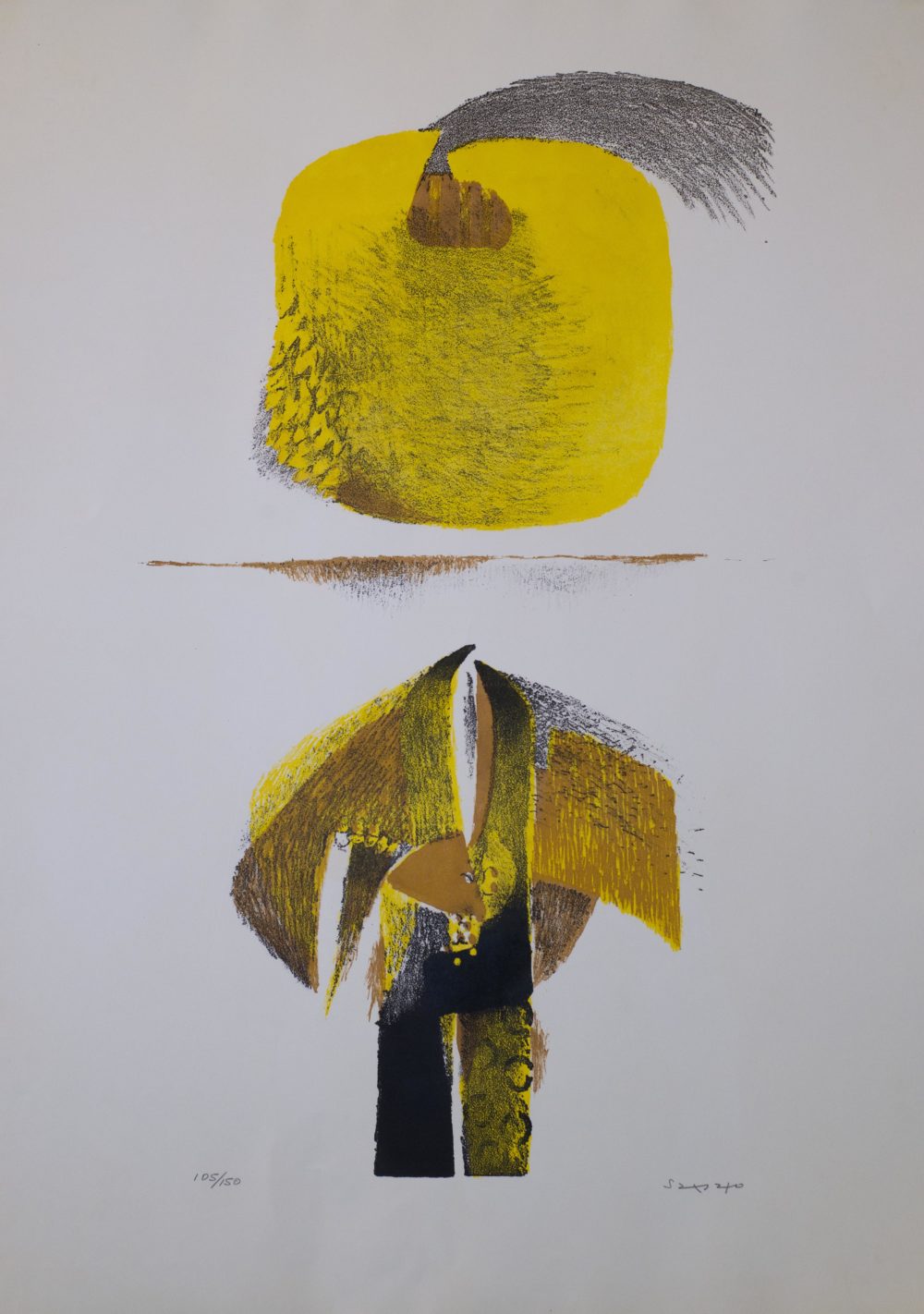 Fernando de Szyszlo (1925 – 2017) es una de las figuras más importantes de la modernidad artística peruana y latinoamericana. Su obra se suma a la cruzada estética que orientó las elecciones formales y conceptuales hacia caminos alejados de la figuración. Szyszlo se entendió a sí mismo como un cronista de la existencia humana, quería documentar lo místico, lo mágico, lo erótico, lo ritual y lo sagrado, pero más que nada, lo humano que habita en las cosas intangibles. Con apenas 24 años partió hacia París, donde descubrió dos cosas “que no sabía pintar y que era latinoamericano”. En la entonces capital artística mundial, se impregnó de los que estableció como faros estéticos: Picasso, Matisse, Klee, Miró, Vermeer, de Chirico, Tamayo; y se rodeó de literatos y poetas —Cortázar, Vargas Llosa, Vallejo, Arguedas, Octavio Paz— que serían fundamentales para edificar la relación entre su poética pictórica, el lenguaje y la identidad latinoamericana. Ello da pistas de por qué sus piezas, como Waman Wasi o “casa del halcón” (1975), perteneciente a una serie que recibe el mismo nombre, poseen títulos en quechua. Para Szyszlo, retomar esta familia lingüística propia del Imperio Incaico, reafirmaba que a pesar de los intentos de aculturación, perviven en el territorio americano prácticas, saberes y herencias precolombinas. Por ello mismo, tomó en sus obras influencias del arte de Chancay, de los magníficos textiles Paracas, y de la cerámica y arquitectura Chavín, con el fin de elaborar un estilo que plasmara lo local, pero que dialogara en clave global.