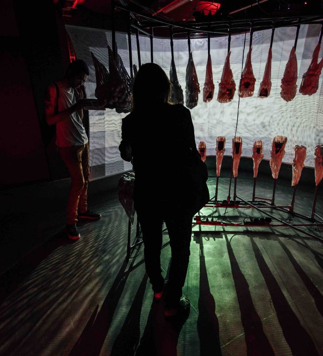 “Quise hacer algo que me identificara como artista y como persona, una experiencia sonora, utilizando mi experiencia como artista plástico y sonoro. Pensé que debía involucrar movimiento, sonido y luz, ya que son los tres ejes que sugiero en mis clases”, expresó Carlos Bonil, artista invitado para al Lab 3 del Museo de Arte Moderno de Medellín.