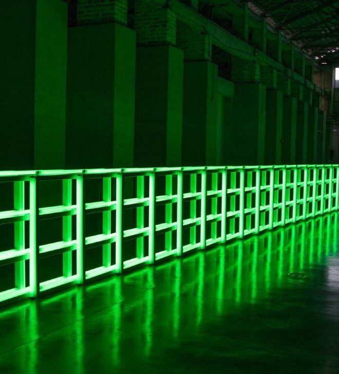 Dan Flavin. Espacio y luz es la primera exposición individual del trabajo de este artista en Colombia e incluye dieciocho proposiciones -como Flavin llamó a sus obras- de la colección de Dia Art Foundation. De manera general, la exposición recorre el surgimiento de las obras hechas exclusivamente con luz, desde la diagonal del 25 de mayo, 1963 (a Constantin Brancusi) (1963) hasta sus elaboradas y ambiciosas barreras, de las cuales sin título (a ti, Heiner, con admiración y afecto) (1974), también conocida como la “barrera verde”, se presenta en esta sala. A través de esta alianza, el Museo de Arte Moderno de Medellín y Dia buscan acercar el trabajo de un artista indispensable del siglo XX al público colombiano, y ofrecer así la oportunidad de explorar directamente un tipo de producción artística que difícilmente se representa en imágenes y de tener una experiencia casi imposible de describir con palabras.