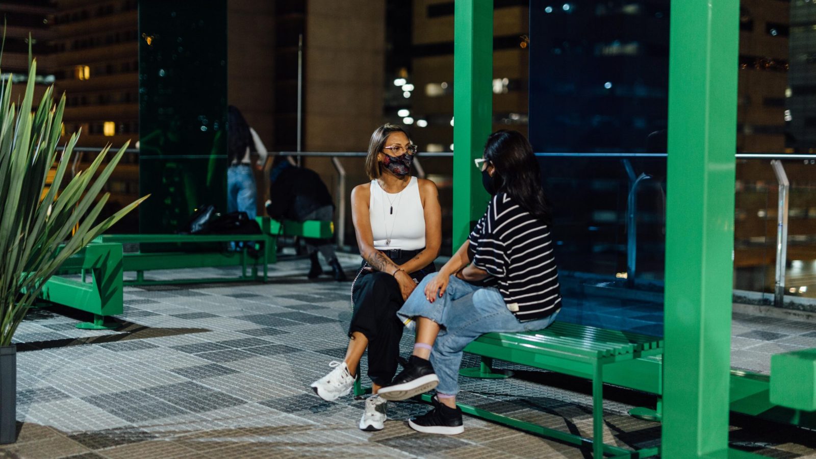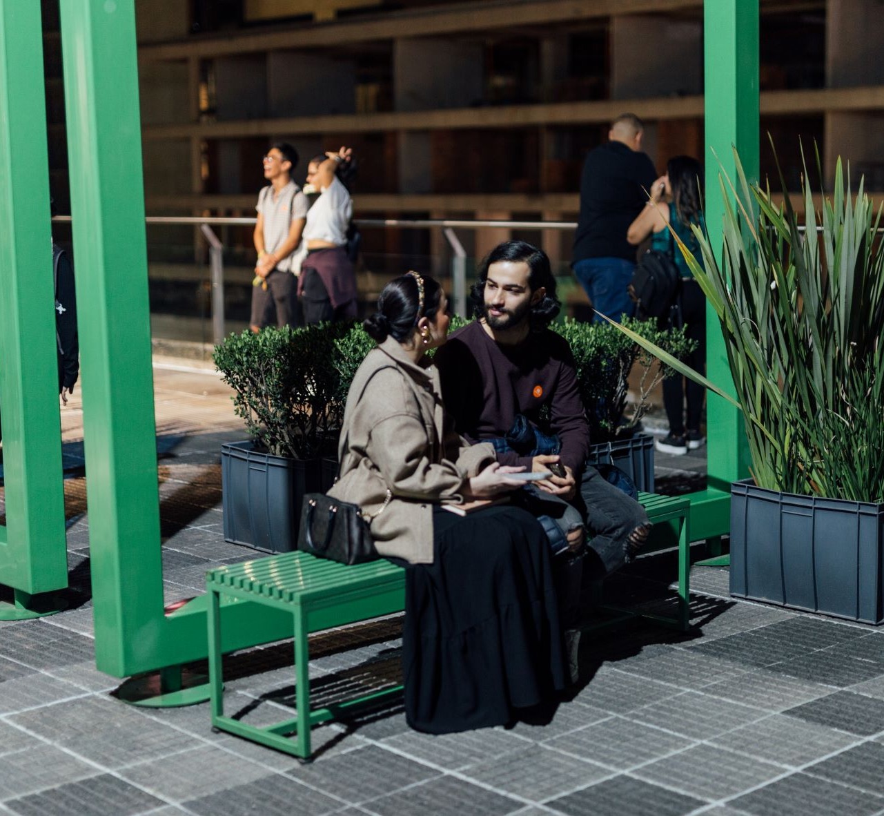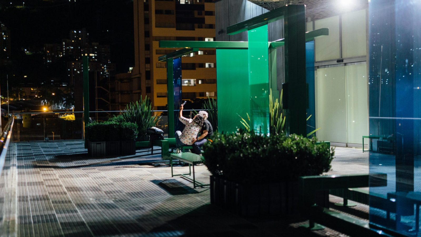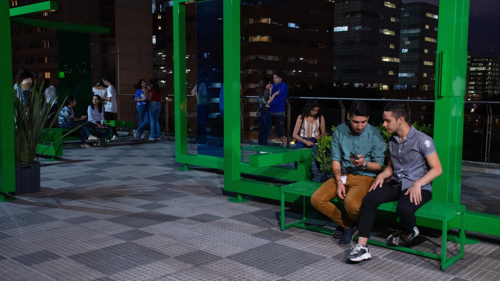 La escultura se compone bajo los principios de la geometría fractal que permite la rotación de una figura orgánica o simple para crear una geometría compleja y fragmentada que multiplica el espacio de la terraza y genera espacios para ver y para estar. Formado como arquitecto, para Hurtado la posibilidad expresiva del arte tiene que ver no sólo con la contemplación sino también con la ocupación física del espacio. Es así que Geometrías fragmentadas se emplaza y dialoga con la arquitectura del Museo para crear y potenciar sus lugares de encuentro, habitación, observación y pensamiento, y para propiciar nuevas miradas sobre la realidad.