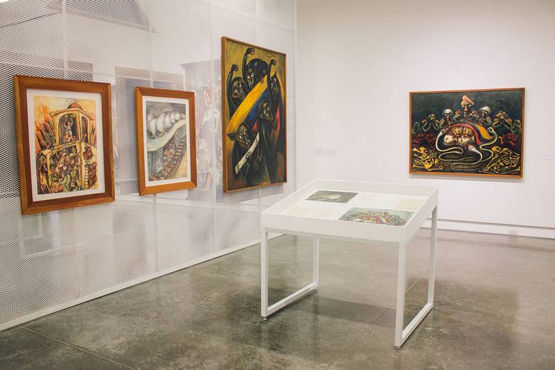 En esta exposición, que retrata la vida con toda su fuerza admirable, como Arango la describiría, las obras se agrupan en temas que atraviesan su trayectoria de manera transversal y que dan cuenta de las preocupaciones fundamentales en su vida y obra. Desnudos, el placer, la religión, la mujer y la sociedad, contexto político, y el retrato fueron algunos de los temas que informaron su producción artística y su visión de la vida y el entorno.