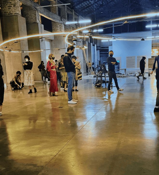 En silencio pero juntos es un mapa de peregrinación y articulación coreográfica. Se trata de dibujar recorridos y al mismo tiempo difundir, de manera más amplia, el conocimiento que Hincapié quiso compartir como pedagoga. Lo coreográfico deviene la intención de gestar algo colectivo, una sumatoria de cuerpos y acciones que desbordan el museo, pero lo incluyen como espacio de cruce y experimentación social. No se trata de una reactivación (re-enactment) de una o varias obras de Hincapié, sino más bien de un gesto que posibilita su presencia en el aquí y ahora y permite articularlo.