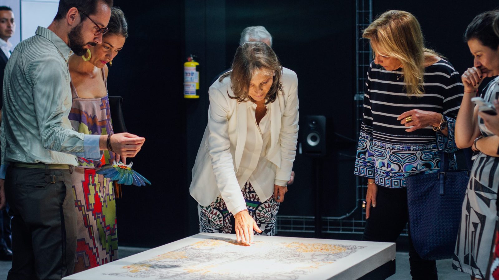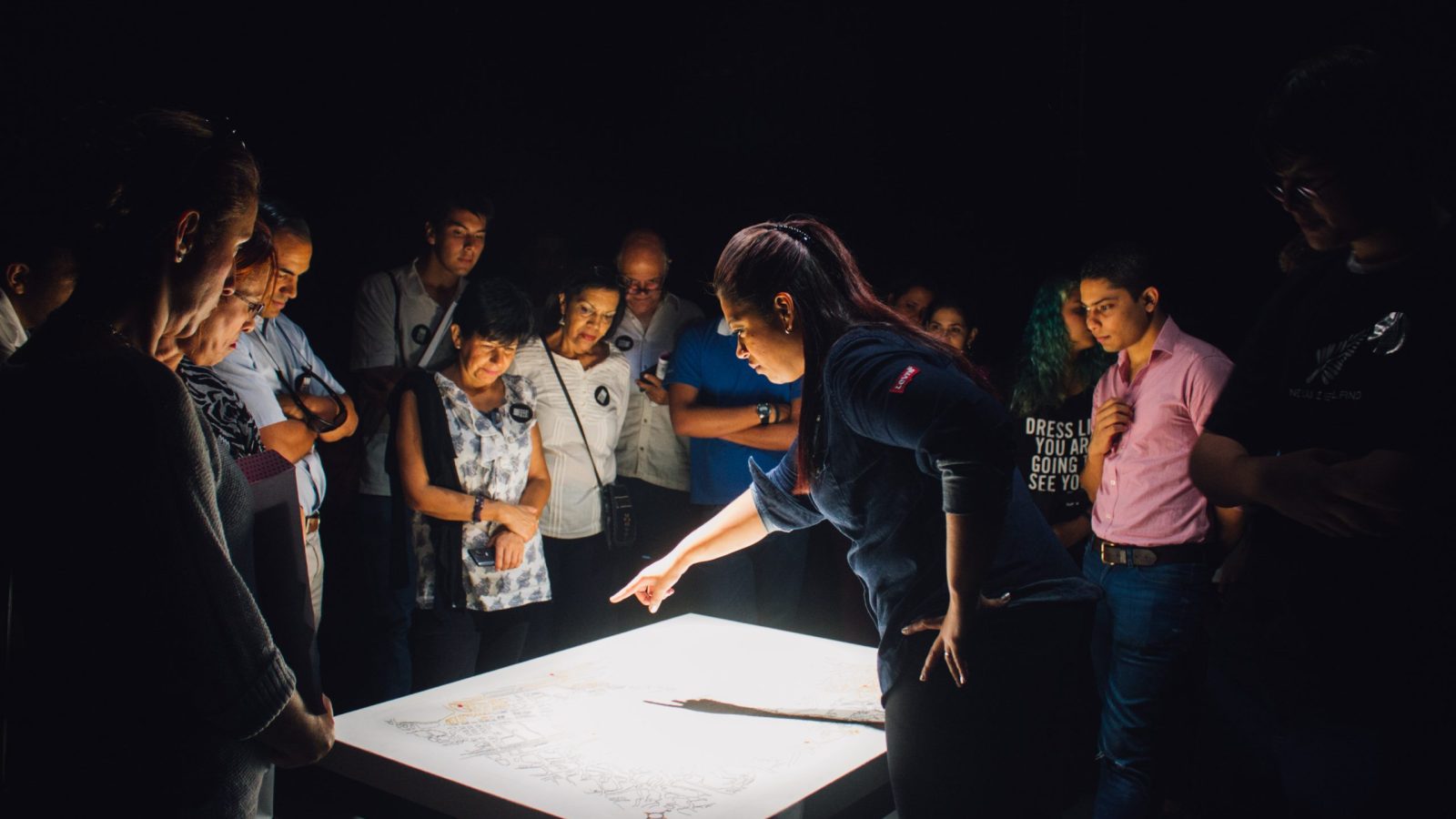 Territorio táctil propone un espacio para el disfrute y la escucha atenta. Se trata de un interfaz táctil que responde al roce de las manos; es un lienzo convertido en membrana sensible al tacto que al tener dibujado un mapa, alimenta y esculpe en el espacio los sonidos del territorio representado.
