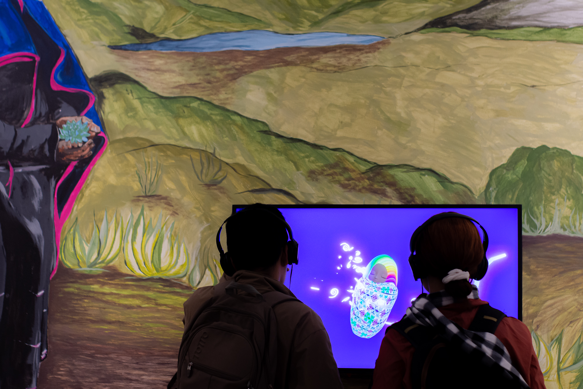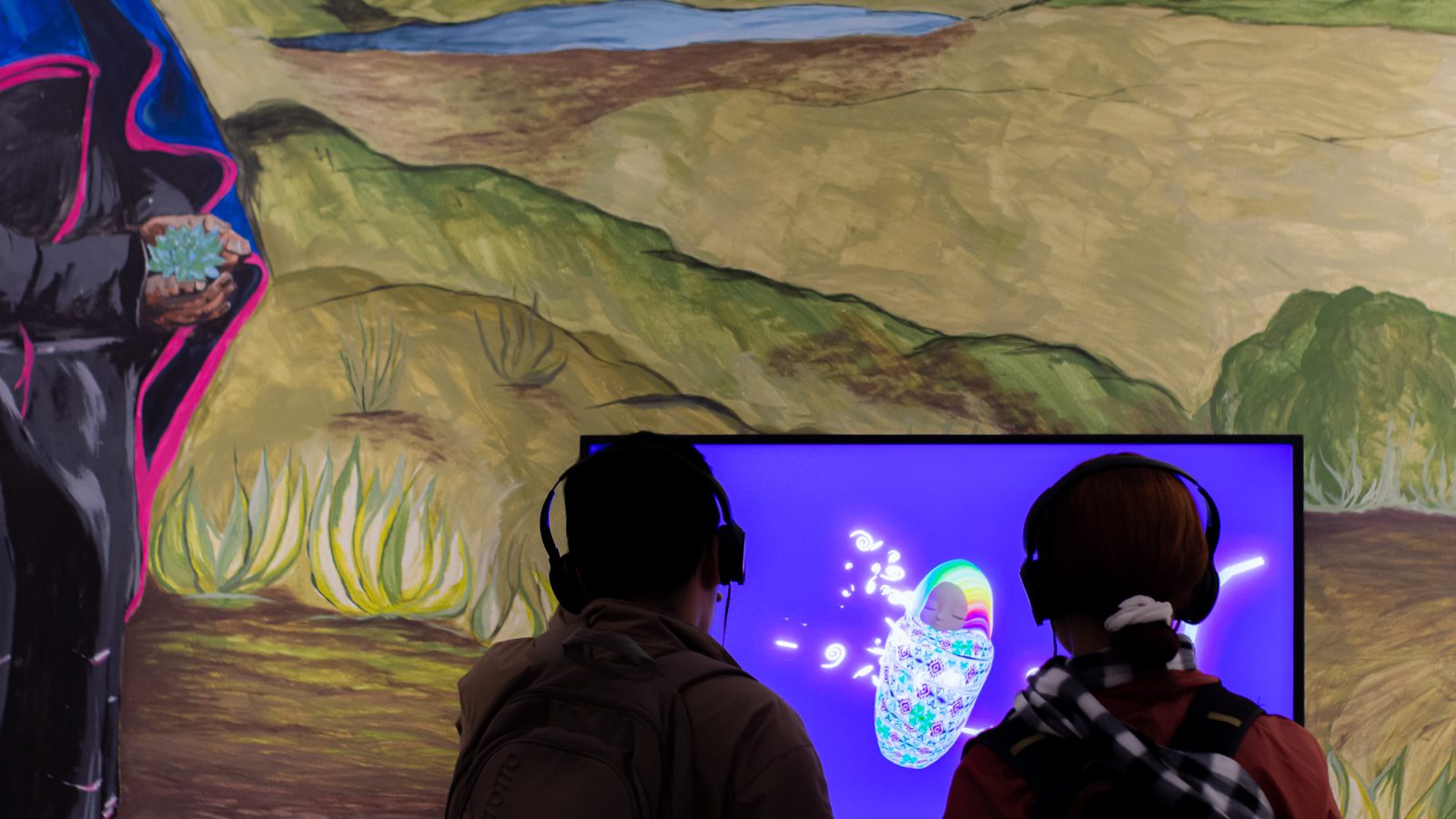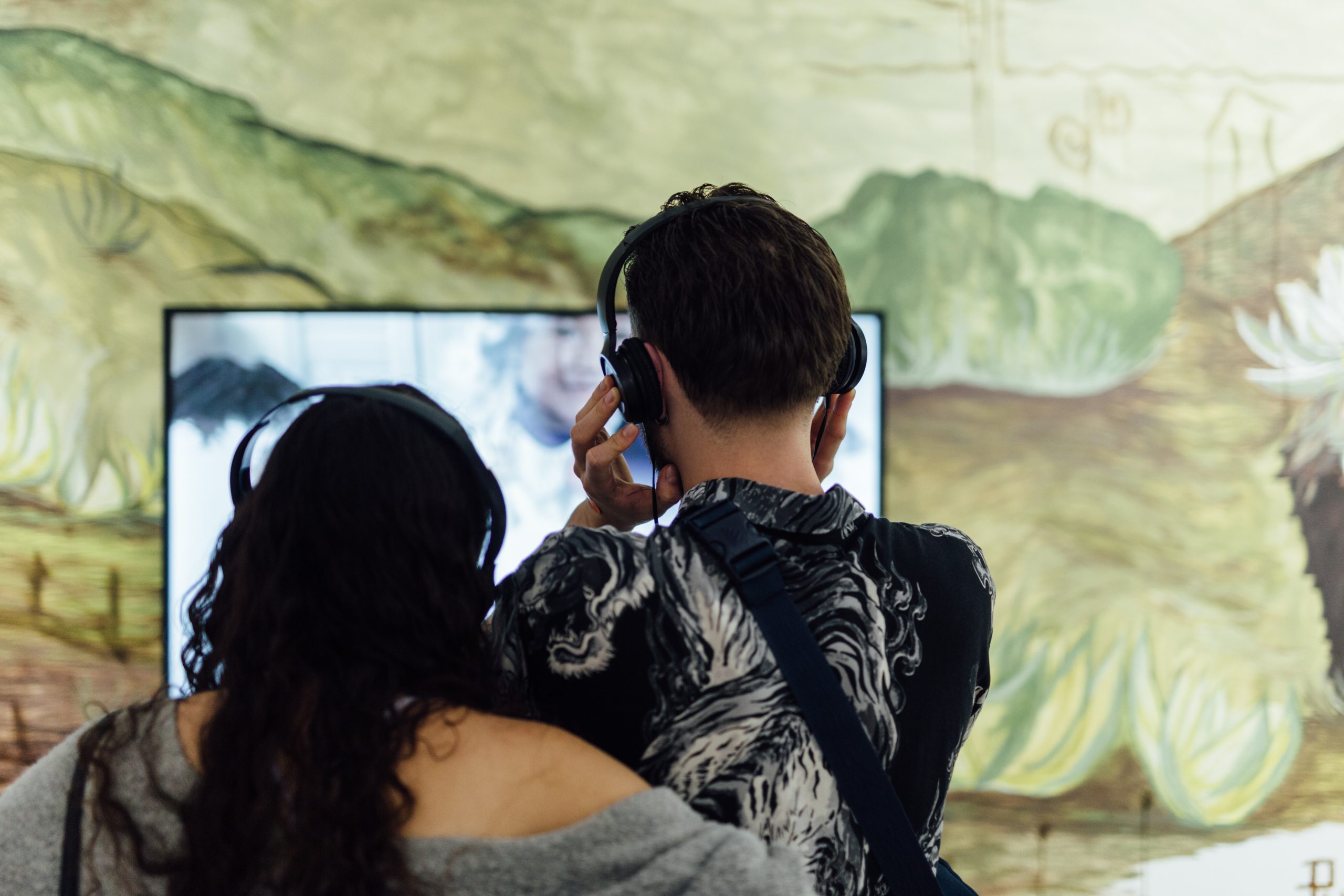 Tiempo para escucharnos hace referencia a la importancia de la oralidad, de la palabra y de la escucha en las culturas ancestrales colombianas e incluye obras de algunos artistas provenientes de estas, junto a la presentación de objetos rituales, experiencias sensoriales y un banco de sonidos que acercan estos saberes desde un lugar privilegiado –el de la intimidad– para resaltar lo mucho que nos une. Además, en la Sala B, una selección de audiovisuales busca acercar a los públicos a distintos procesos ancestrales y contemporáneos, mientras una experiencia en realidad virtual permite participar en primera persona del baile del carrizo de los pueblos amazónicos. El título y los distintos componentes del proyecto son un llamado a la escucha de la voz, de los territorios, de los sonidos ancestrales en Colombia, porque no es posible establecer un diálogo si no existe disposición para la escucha.