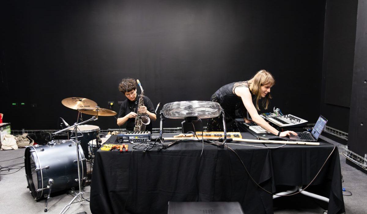 Eco y Paula proponen una experiencia sensible en la que el aire es medio y mensaje; espacio vacío entre cuerpos sonoros y, a su vez, cuerpo que suena. Un concierto de estructura variable, basado en la improvisación y el juego con máquinas, objetos e instrumentos, algunos de viento, comisionado por el Museo de Arte Moderno de Medellín, para entrar en diálogo con la temática del aire propuesta en la instalación sonora “Huellas del Aire” de Ximena Alarcón, que se expone en el Lab3 del museo. Improvisaron juntes por primera vez hace 18 años, en un lago. Había un Eco, un Pedro con unas piedras lanzadas al agua, una Paula con un saxofón y un perro.